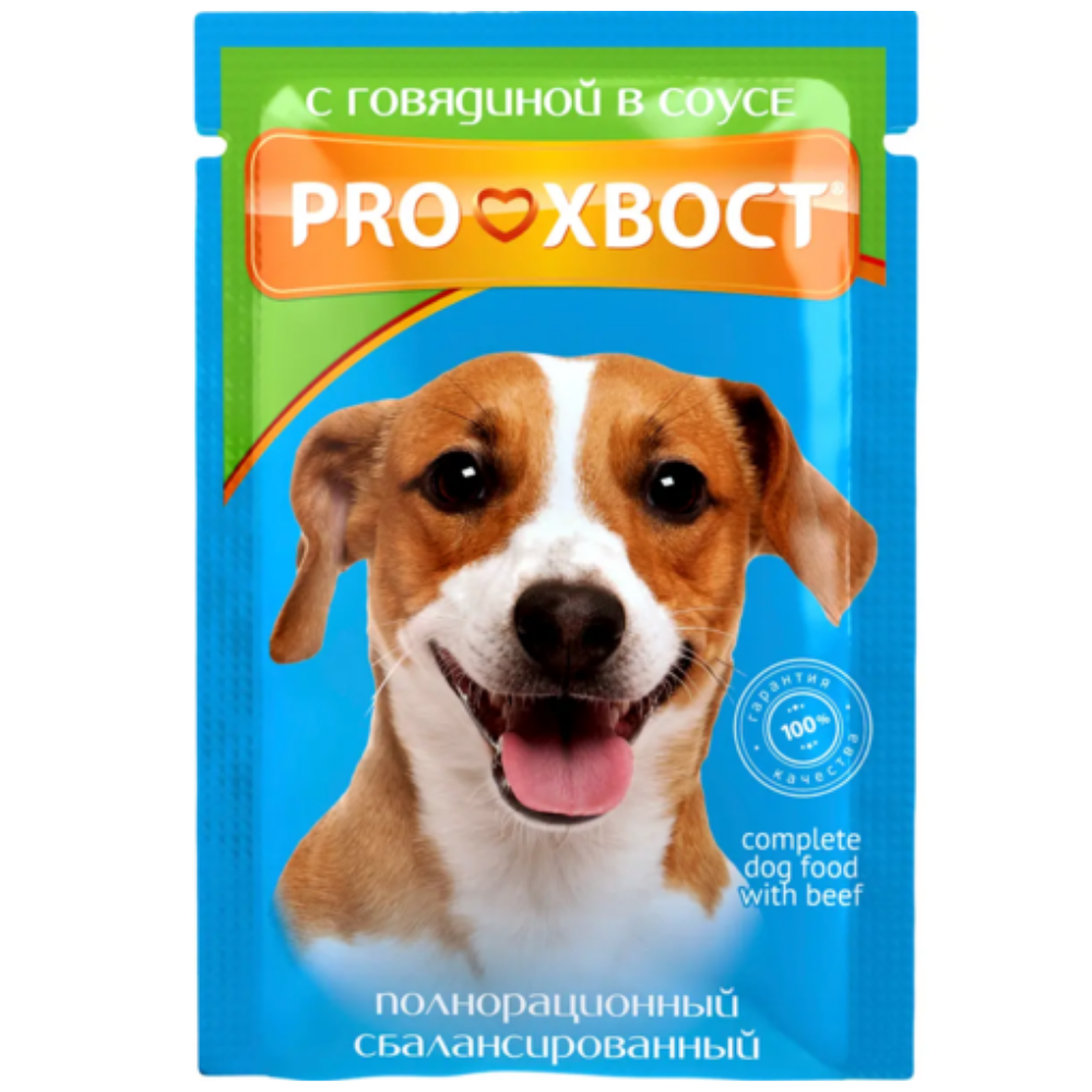 Корм для собак PRO ХВОСТ Прохвост с говядиной в соусе 85 г пауч**