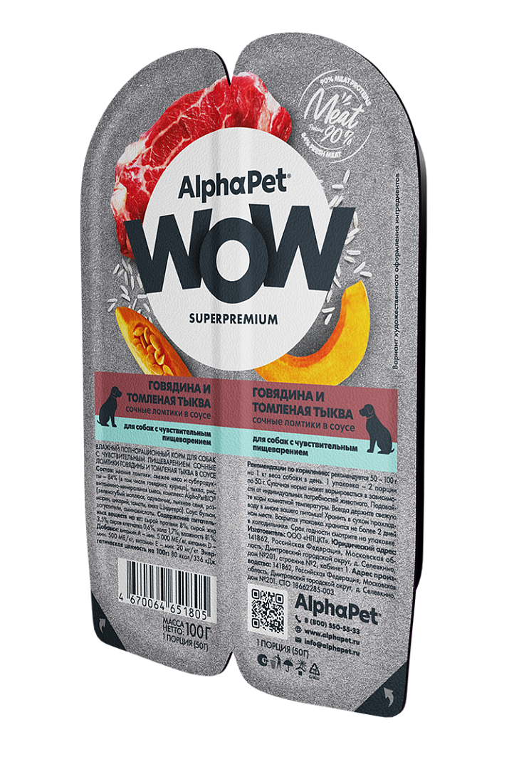 АльфаПет WOW д/с с чувств.пищ. Говядина и томленая тыква сочные ломтики в соусе 100 гр