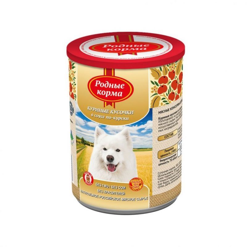 Корм для собак Родные корма куриные кусочки в соусе по-курски конс. 970 г ж/б**