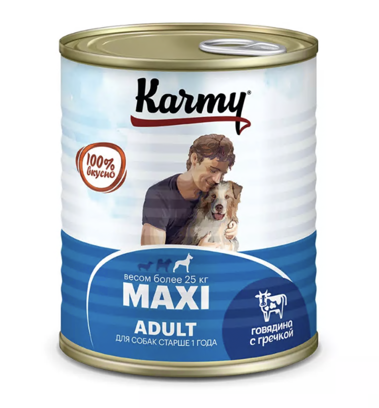 Корм для собак Karmy Maxi Adult Карми для крупных пород с говядиной и гречкой конс. 850 г ж/б**
