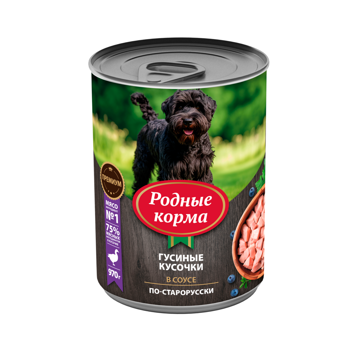 Корм для собак Родные корма гусиные кусочки в соусе по-старорусски 970 гр. ж/б