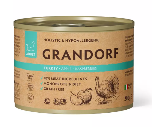 Грандорф д/собак консервы (паштет из индейки с яблоком и малиной) 200 гр