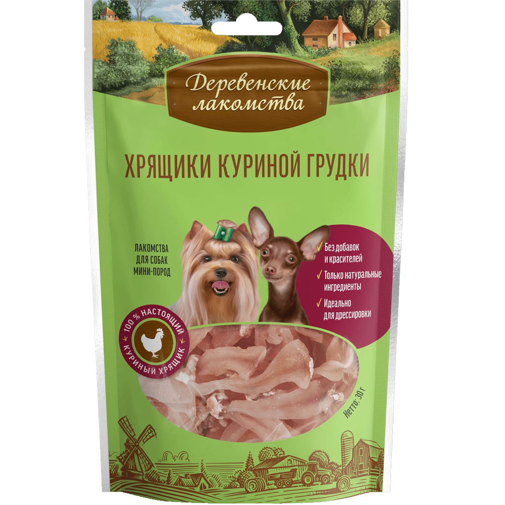 Лакомство для собак Деревенские лакомства для мини пород Хрящики куриной грудки 30 гр.