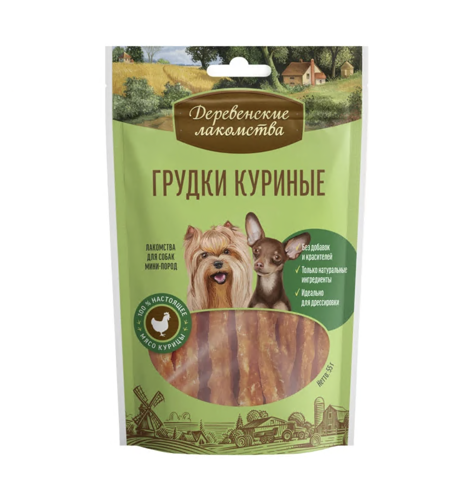 Лакомство для собак Деревенские лакомства Грудки куриные для мини-пород 55 г**