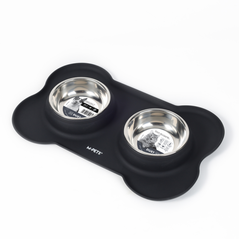 Миска для животных MPets двойная металлическая с силиконовым основанием 400 мл