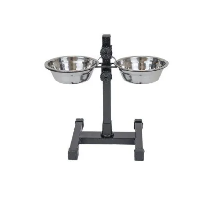 Миска для животных Моськи-Авоськи металлическая регулируемая h 30 см, миски 2*0,35 мл, D 14 см черная