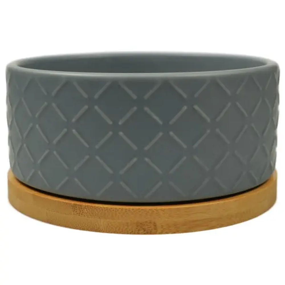 Миска для собак Mr.Кranch Мистер Кранч Bamboo керамическая серая на бамбуковой подставке 860 мл