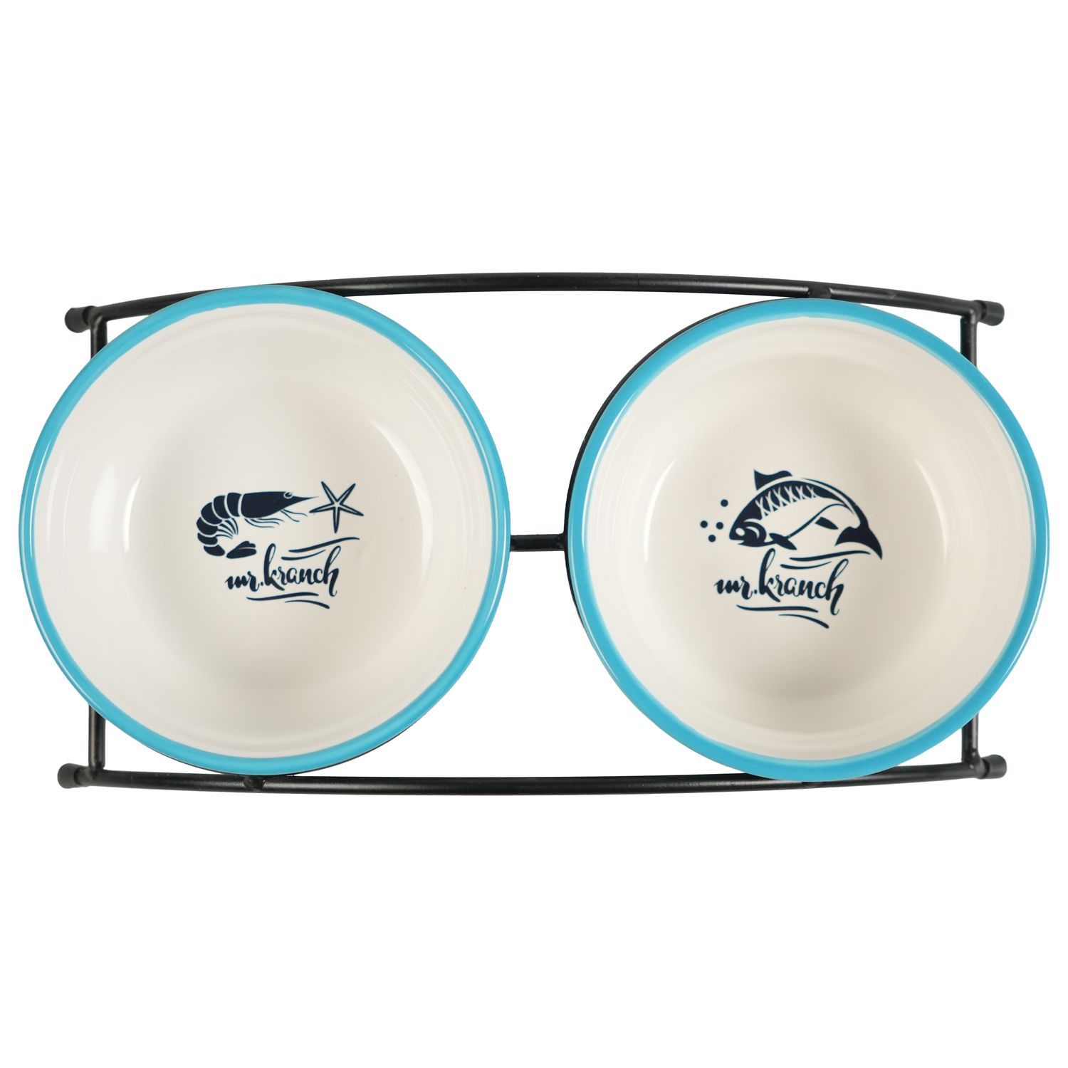 Mr.Kranch Миска д/с/к 2*290 мл. на подставке двойная fish&chips, голубые