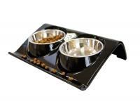 Миска для животных SuperDesign Супер Дизайн двойная на меламиновой подставке Z формы 2х160 мл черная**
