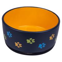 Керамическая миска для собак с изображением лапок. Удобно использовать и легко мыть.