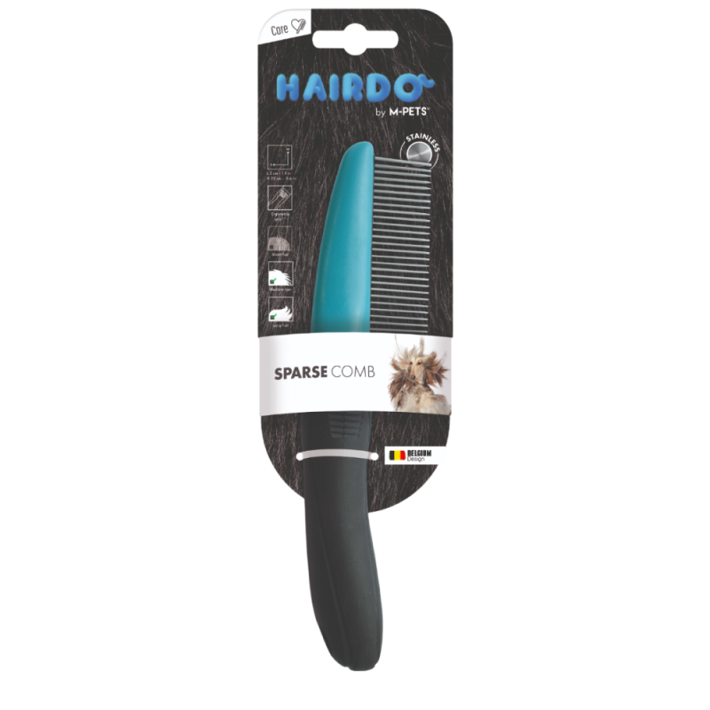 Расческа для собак M-PETS с редкими зубцами, для первичного расчесывания. Используется для удаления отмершей и линяющей шерсти средне и длинношерстных собак, а также при расчесывании колтунов. Зубчики расположены перпендикулярно к рукоятке, что значительно облегчает вычесывание. Это особенно важно для пород с шелковистой шерстью при небольшом подшерстке или без него. Регулярное расчесывание предотвратит спутывание шерсти и образование колтунов. Расческа отличается удобной, прорезиненной, эргономичной ручкой.
