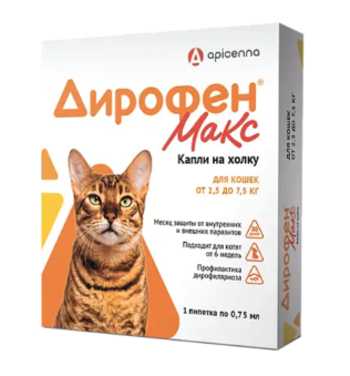 Дирофен МАКС 60мг (д/кошек от 2,5 до 7,5кг), 1 пипетка по 0,75мл