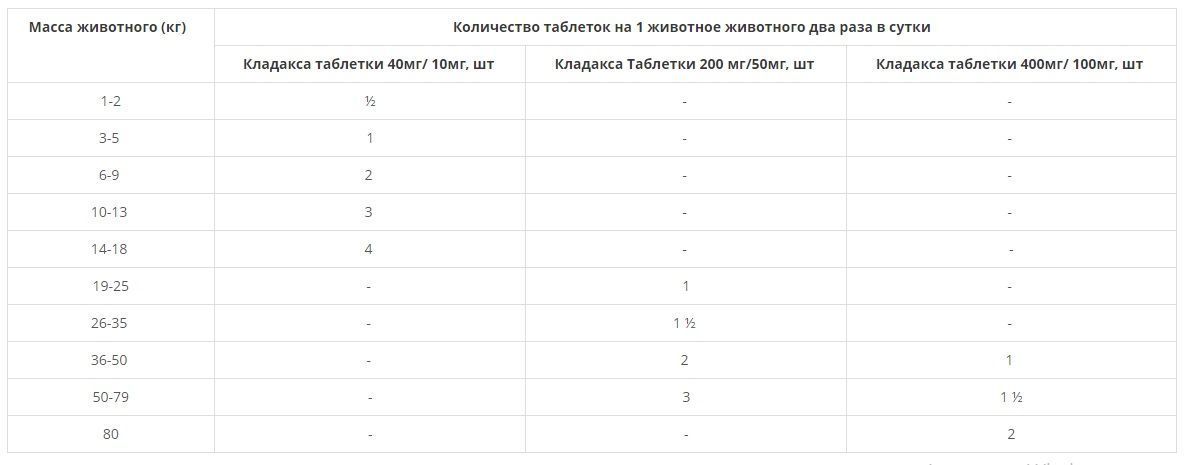 Препарат назначают перорально в разовой дозе 12,5 мг (по сумме действующих веществ) на 1 кг массы животного дважды в день. Жевательные таблетки дают кошкам и собакам с руки или в смеси с кормом. Прием пищи не влияет на биодоступность действующих веществ лекарственного препарата.