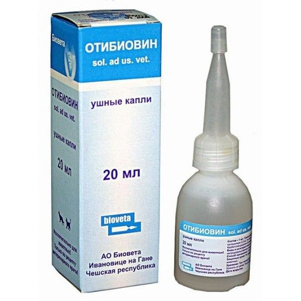 Отибиовин. Ушные капли для лечения наружного отита бактериальной и грибковой этиологии и поверхностного дерматита у собак и кошек.