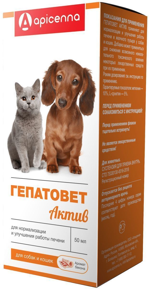 Гепатовет Актив для собак и кошек. Суспензия для орального применения,применяется для лечения заболеваний печени различной этиологии.