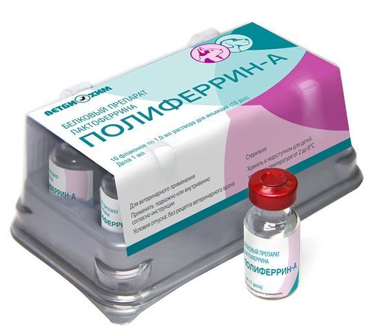 Лекарственный препарат Полиферрин-А содержит гликопротеин, относящийся к семейству железосодержащих белков, выделенный из молозива лактирующих сельскохозяйственных животных (мелкого и крупного рогатого скота, кроликов). Препарат не содержит антибиотики и консерванты.