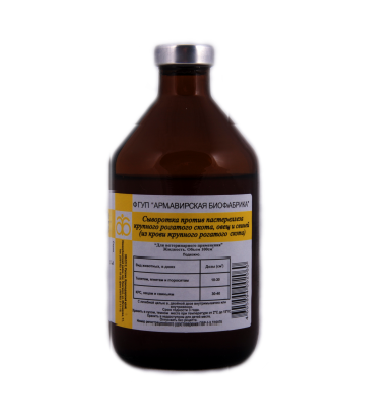 Сыворотка предназначена для лечения и профилактики пастереллеза крупного рогатого скота, овец и свиней.