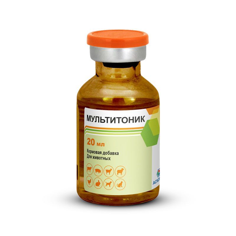 Показания к применению: «Мультитоник» применяют для обогащения и балансирования рациона кормления сельскохозяйственных животных, сельскохозяйственной птицы, мелких домашних животных, пушных зверей витаминами и аминокислотами. Рекомендуется применять при стрессах, вызванных вакцинацией, заболеваниями, транспортировкой, высокой влажностью, высокими температурами или резкими перепадами температур, а также для улучшения конверсии корма.