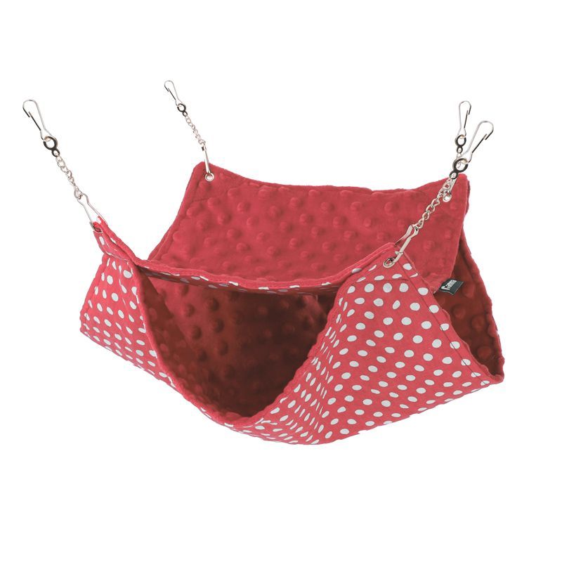 Оригинальный двухуровневый подвесной гамак "Клубника" для мелких животных обязательно станет любимым местом отдыха вашего питомца. Благодаря функциональному и мягкому плюшу и хлопку изделие прослужит максимально долго и не потускнеет даже после многократной стирки, а подвесной механизм с удобным карабином позволит установить его в любом месте внутри клетки.