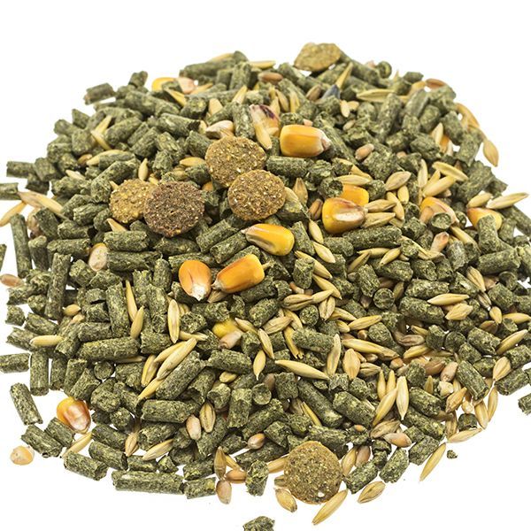 Состав: Травяные гранулы, овес, пшеница, ячмень, кукуруза, экструдированные гранулы.