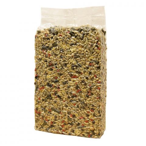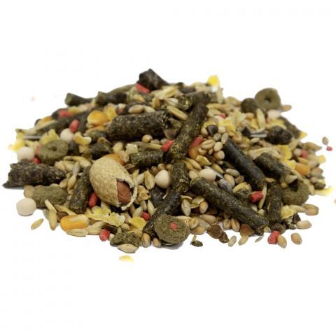 Состав: пшеница, пшеница воздушная, ячмень воздушный, зерновые гранулы (т.ч. Юкка Шидигера, пребиотик, Омега-3 и -6), просо желтое, просо красное, хлопья кукурузные, лен, сафлор, сорго, семечка подсолнечника, рожковое дерево, экструдированные гранулы, морковь, арахис, банановые чипсы, ананас сушенный.