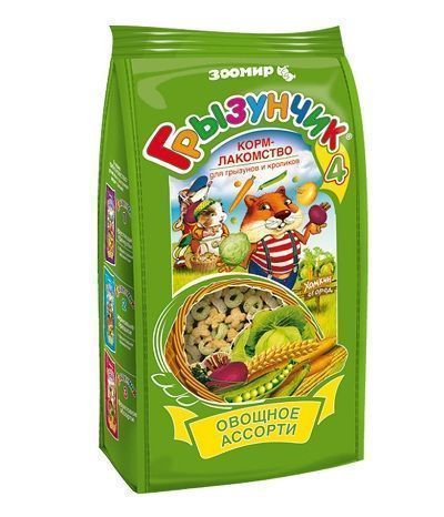 Корм-лакомство для грызунов и кроликов "Грызунчик-4 Овощное ассорти" - гранулированный корм-лакомство для хомяков, морских свинок, мышей, крыс, шиншилл, дегу, песчанок, белок и других декоративных грызунов и кроликов.