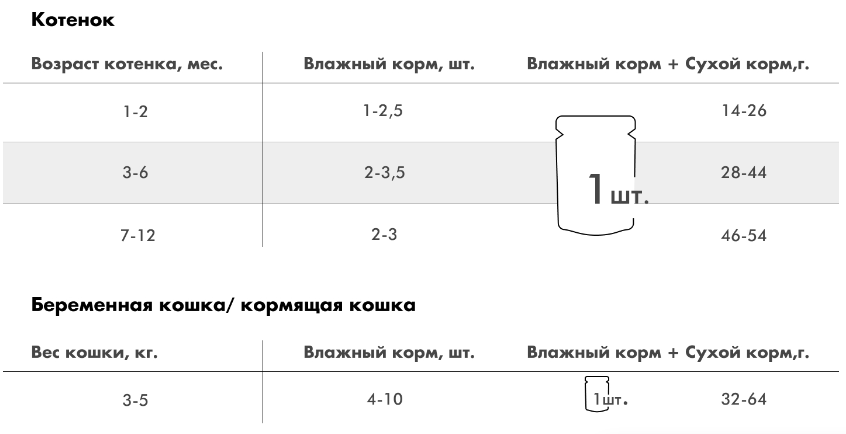 Рекомендации по кормлению: указаны на упаковке. Рекомендуемую суточную порцию можно разделить на 2-3 приема кормления. Индивидуальные потребности в питании могут отличаться в зависимости от размера и уровня активности котенка. Данные предписания носят исключительно рекомендательный характер. Для достижения оптимального состояния животного может потребоваться изменение рациона. Переход на новый корм должен происходить в течение недели или более. Всегда оставляйте постоянный доступ к чистой питьевой воде. После вскрытия хранить в холодильнике и использовать в течение 2 дней.