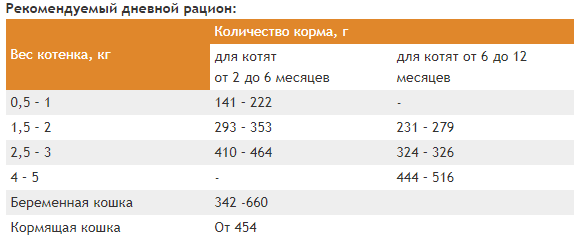 Рекомендации по кормлению: указаны на упаковке. Рекомендуемую суточную порцию можно разделить на 2-3 приема кормления. Индивидуальные потребности в питании могут отличаться в зависимости от размера и уровня активности котенка. Данные предписания носят исключительно рекомендательный характер. Для достижения оптимального состояния животного может потребоваться изменение рациона. Переход на новый корм должен происходить в течение недели или более. Всегда оставляйте постоянный доступ к чистой питьевой воде. После вскрытия хранить в холодильнике и использовать в течение 2 дней.
