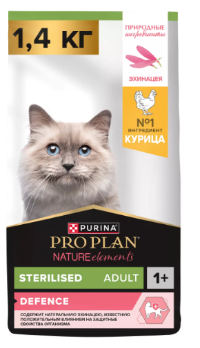 Корм для кошек Pro Plan NATURE ELEMENTS Про План для стерилизованных курица 1,4 кг сух.пакет