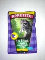 Корм для кошек Appetite Аппетит влажный индейка с перепелкой 85 гр. пауч