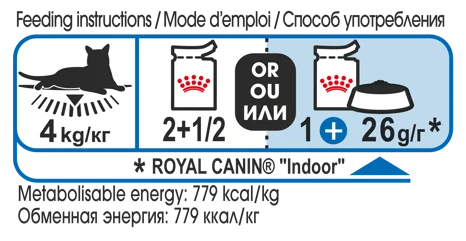 Корм обладает балансом минеральных веществ, помогающий поддерживать здоровье мочевыделительной системы взрослой кошки, а жирные кислоты Омега 3 и 6 - здоровье кожи и шерсти. Кроме того, Indoor Sterilised в паштете включает в себя энергетическое соотношение белков, жиров и углеводов, интинктивно предпочитаемое большинством кошек, а низкая калорийность способствует чувству насыщения. Жирные кислоты EPA-DHA помогают поддерживать здоровье суставов кошки.