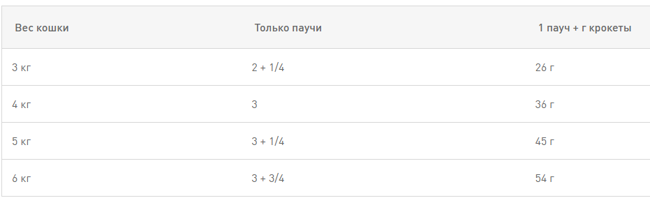 Рекомендации по кормлению: см. таблицу. Корм готов к употреблению. Проследите, чтобы у вашей кошки всегда была свежая вода.