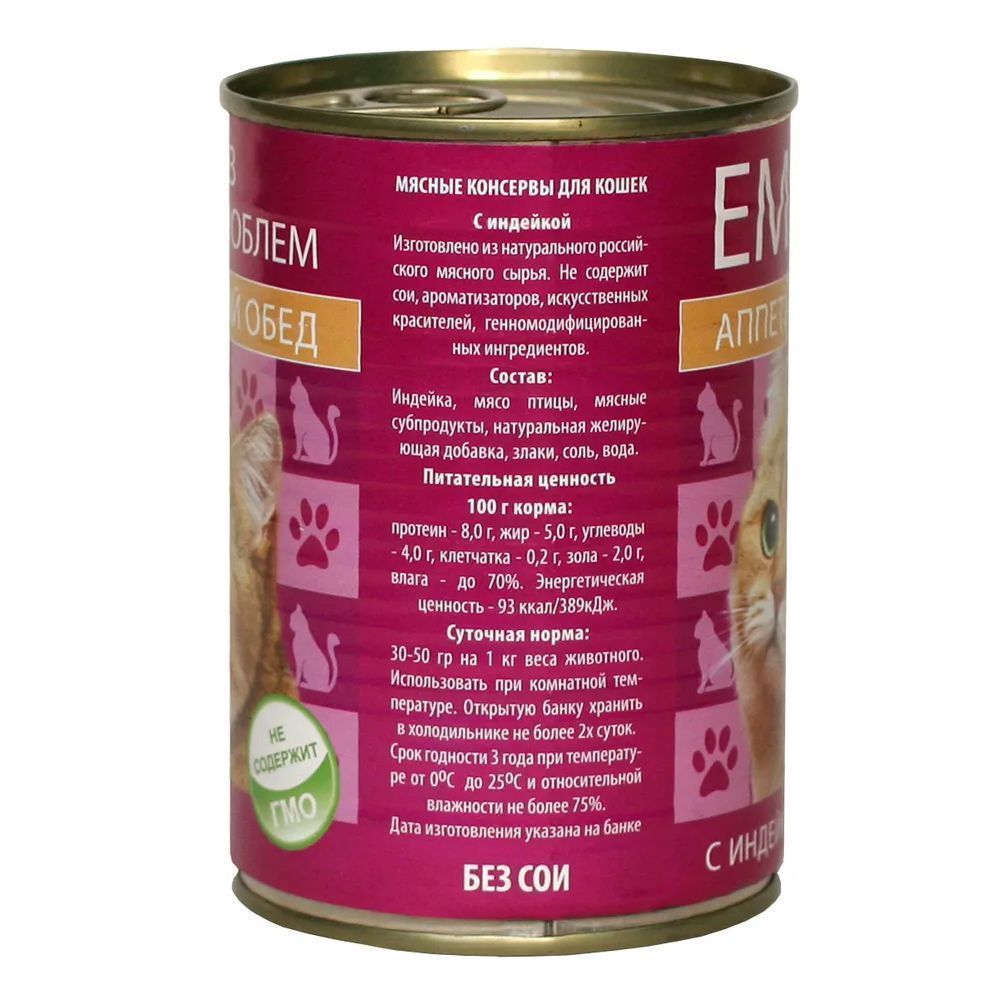 Корм для кошек Ем без проблем конс. индейка 410 гр. ж/б
