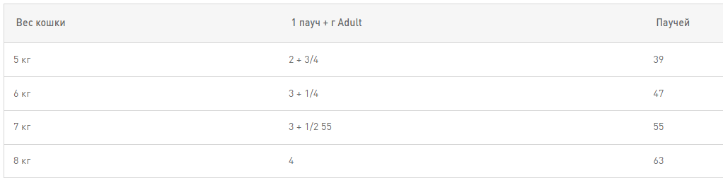 Рекомендации по кормлению: см. таблицу. Корм готов к употреблению. Проследите, чтобы у вашей кошки всегда была свежая вода. Хранить в сухом, прохладном месте.
