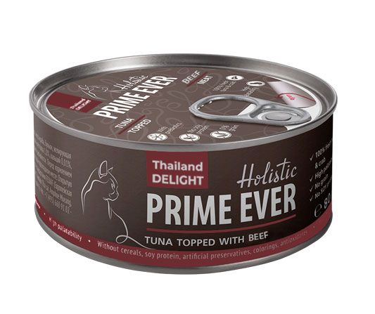 Корм для кошек Prime Ever Holistic Прайм Эвер Холистик тунец с говядиной в желе конс. 80 г ж/б**