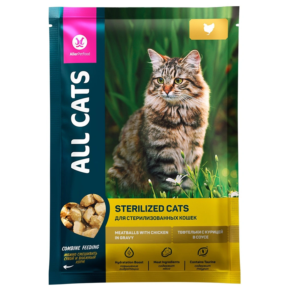 Корм для кошек All СATS Sterilized Олл Кэтс для стерилизованных Тефтельки с курицей в соусе 85 г пауч**