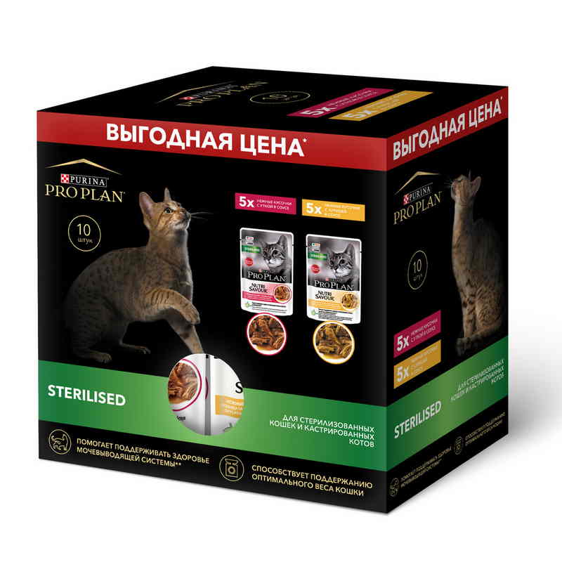 Корм для кошек Pro Plan Sterilised Про План влажный для кастрированных котов и кошек курица и утка 4*85 гр. пауч