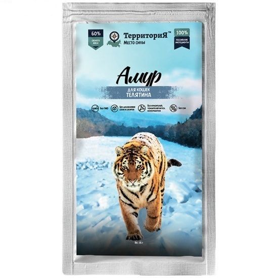 Корм для кошек Территория Амур с телятиной 85 г пауч**