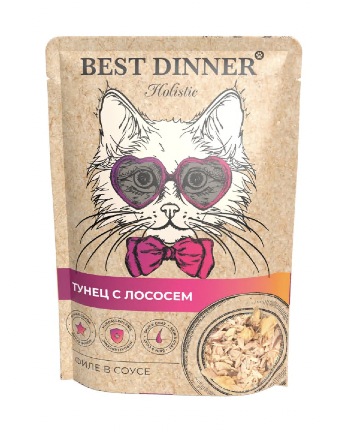 Корм для кошек Best Dinner Holistic Бест Диннер Холистик тунец с лососем филе в соусе 70 г пауч