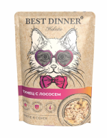 Полнорационный влажный консервированный корм Best Dinner филе "Тунец с лососем" для взрослых кошек.