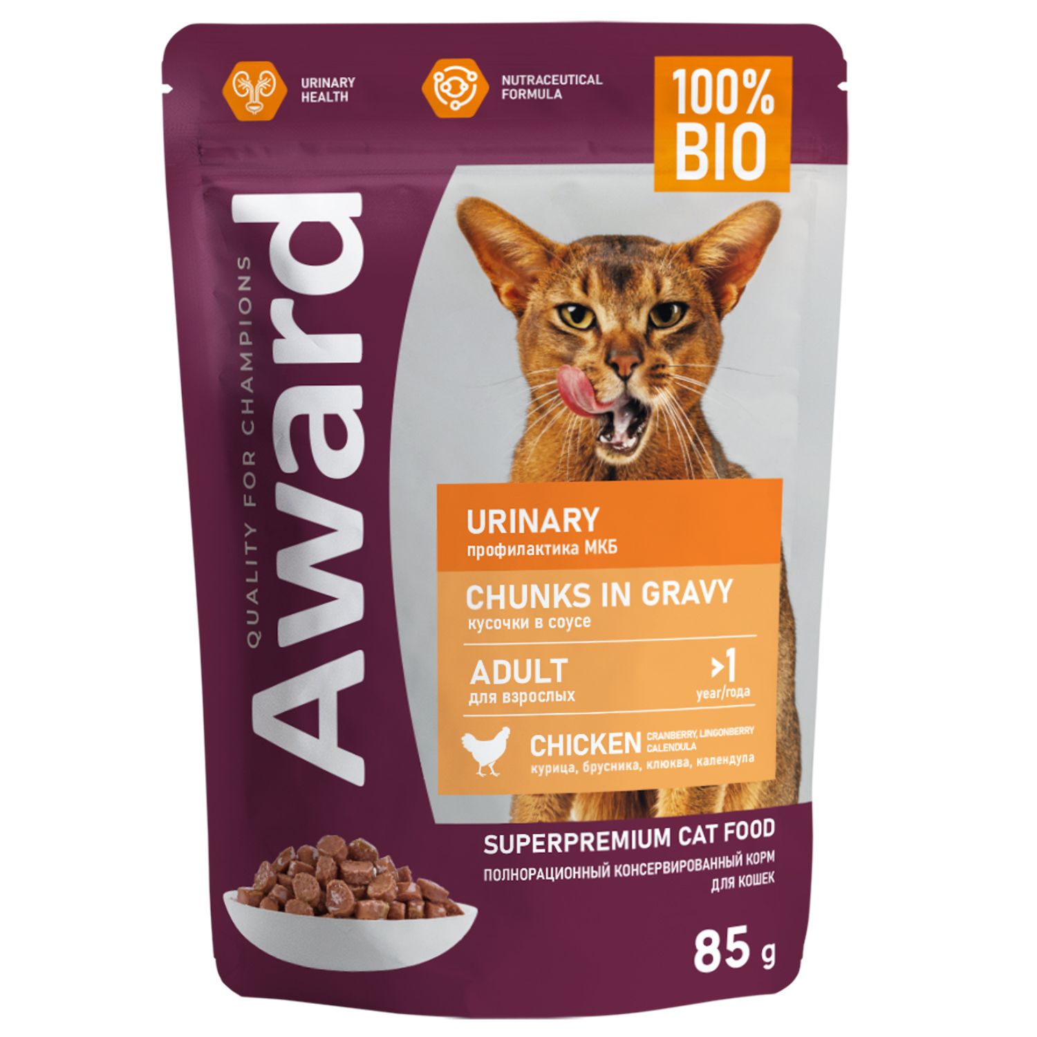 AWARD д/к 85 гр пауч Urinary кусочки в соусе с курицей