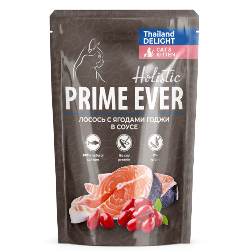 Корм для кошек Prime Ever Holistic Прайм Эвер холистик лосось с ягодами годжи в соусе 85 г пауч