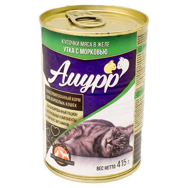 Корм для кошек Амурр с уткой и морковью кусочки мяса в желе конс. 415 г ж/б**