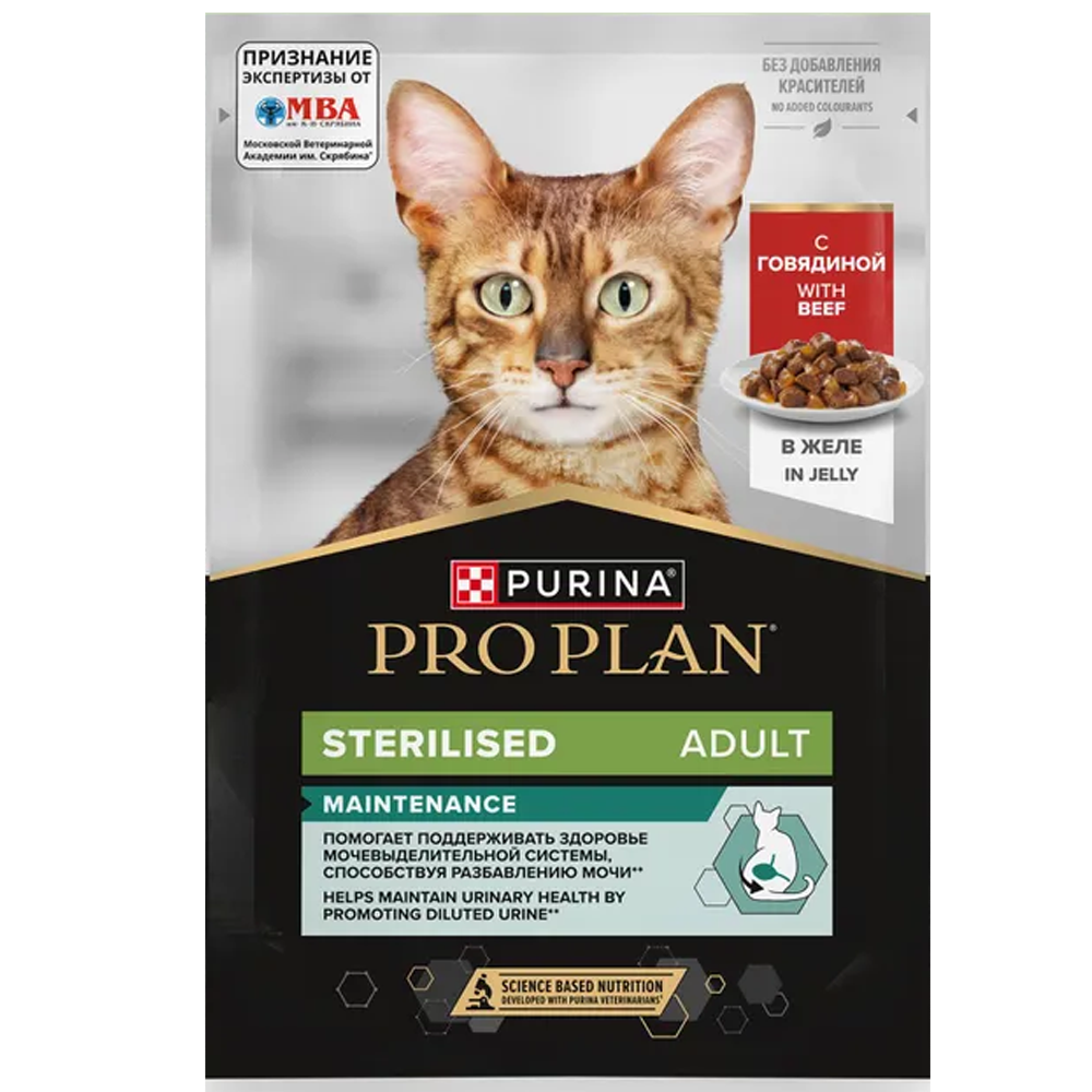 Корм для кошек Про План для стерилизованных говядина в соусе 85 г пауч*
