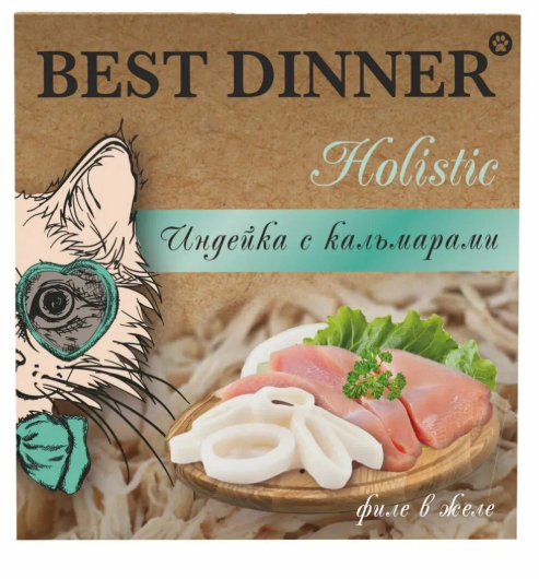 Best Dinner д/к стерилизованных Мясные волокна "Индейка с кальмарами" в желе 75 г ламистер