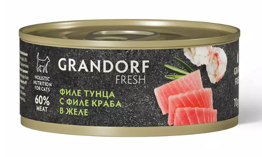 Корм для кошек Grandorf FRESH Грандорф Фреш конс филе тунца с филе краба в желе 70 г