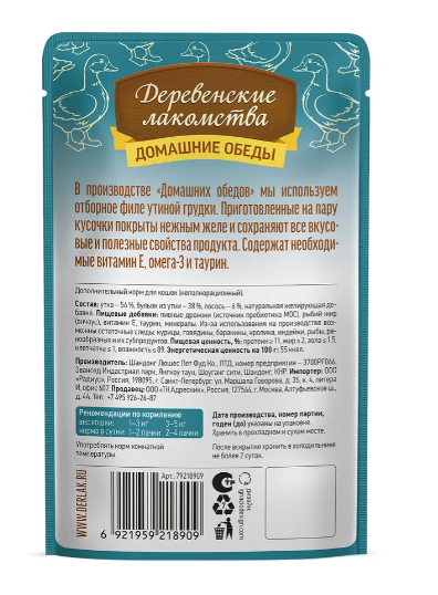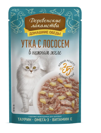 Корм д/к Деревенские Лакомства "Утка с лососем в нежном желе" 70 гр. пауч