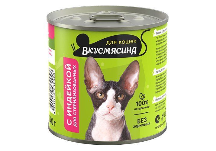 Вкусмясина д/стерил.кошек Мясное ассорти с индейкой 240 гр