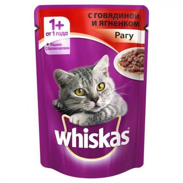 Консервированный корм Whiskas "Рагу с говядиной и ягнёнком"- полнорационный корм эконом-класса, предназначенный для взрослых кошек с 1 года до 7 лет. В состав корма входят все питательные вещества,витамины и минералы,необходимые для сбалансированного питания Вашей кошки каждый день.Без красителей и консервантов.