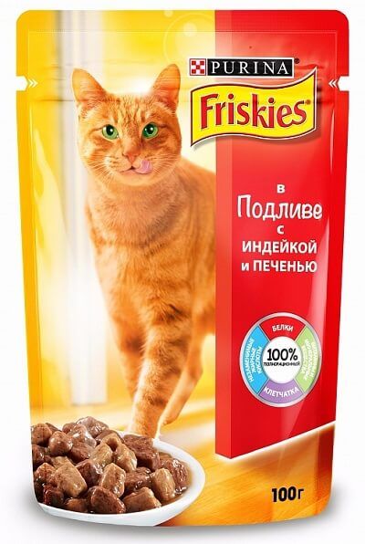 Корм для кошек Friskies Фрискис влажный в подливе с индейкой и печенью 100 гр. пауч
